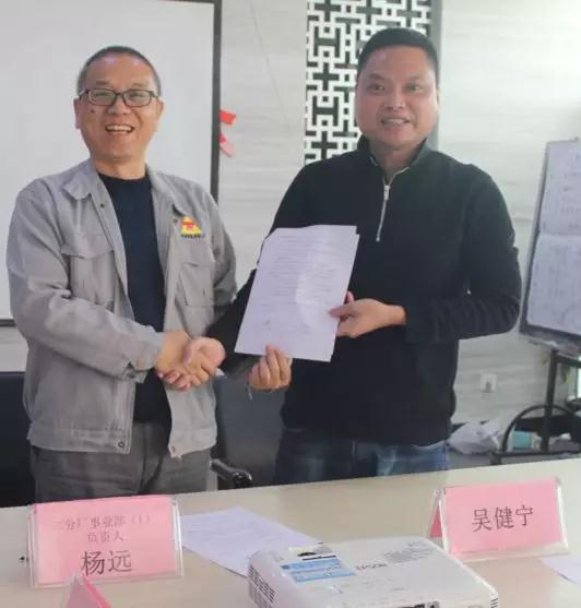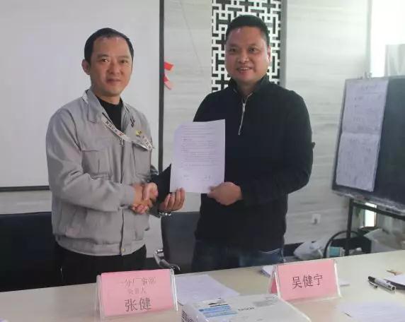 總經(jīng)理吳健寧與事業(yè)二部負(fù)責(zé)人楊遠(yuǎn)簽暑協(xié)議