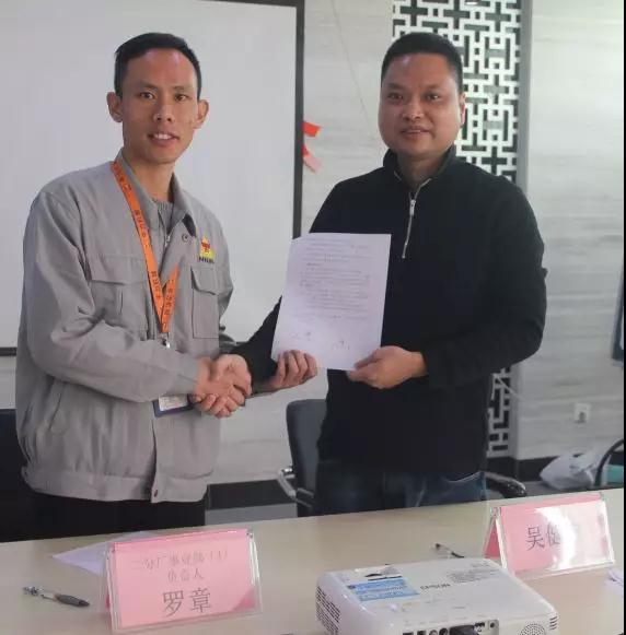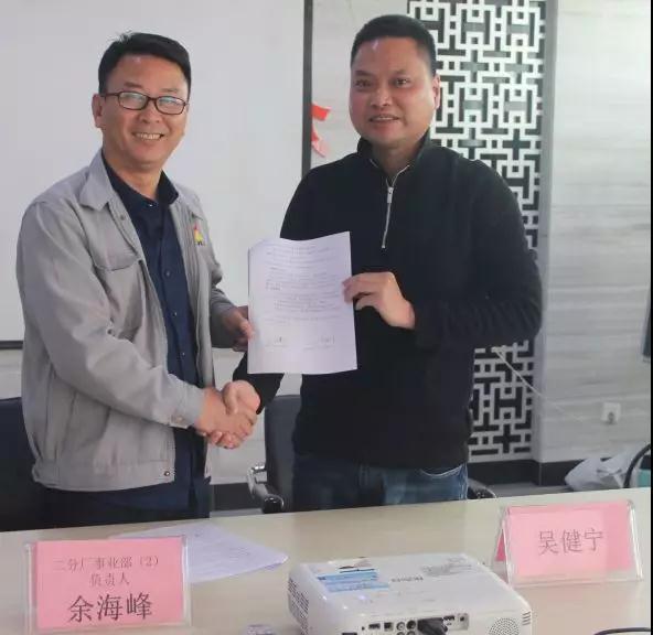 經(jīng)理吳健寧與事業(yè)一部負(fù)責(zé)人張健簽暑協(xié)議
