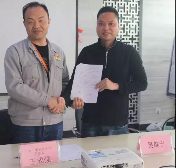 總經(jīng)理吳健寧與事業(yè)四部負(fù)責(zé)人王成強(qiáng)簽暑協(xié)議