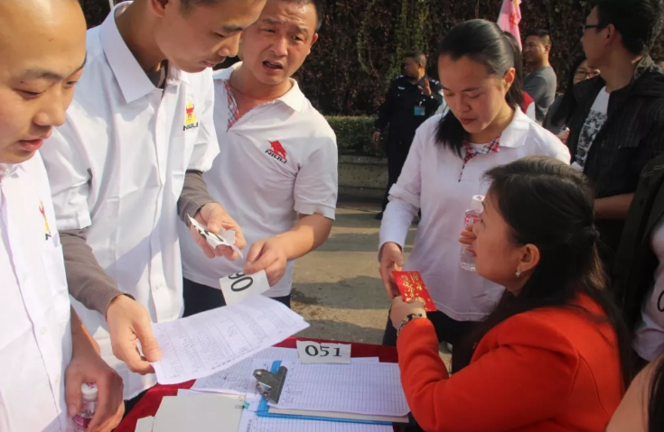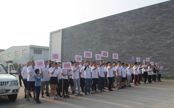 Ready to start ~, the employees of the company, dressed in neat white T-shirts, form a neat and uniform square array, run forward with high heads, and rush to the journey of "Brocade dog" with firm and heroic steps.