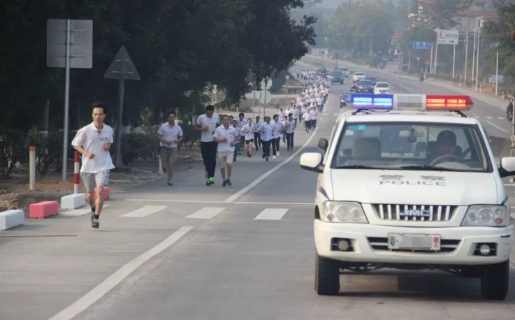 During the long-distance running, there are police car tracking escort and 120 emergency rescue vehicles to prepare for accident prevention