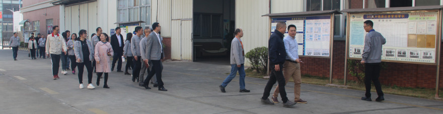 On the afternoon of December 28, 2019, the 23 member lean management learning and Exchange team of niuli Machinery Manufacturing Co., Ltd. visited Yongjian fine machinery (Jiangmen) Co., Ltd., an excellent enterprise in the motorcycle accessories industry, deeply understood the lean production mode of Yongjian fine machinery, and carefully listened to the detailed explanation on the lean production of Yongjian fine machinery by general manager Shao and deputy general manager Zhao of Yongjian company, The management team of niuli company learned a lot of valuable lean production knowledge and gained a lot.
