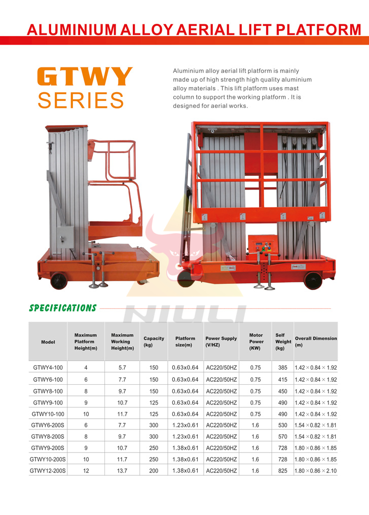 lift platform uses mast column to support the working platform.it is designed for earial works.