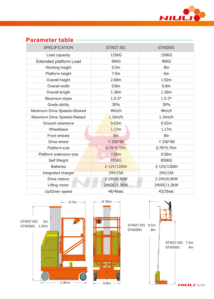 Working height(mm) | 9500 | 8000 |