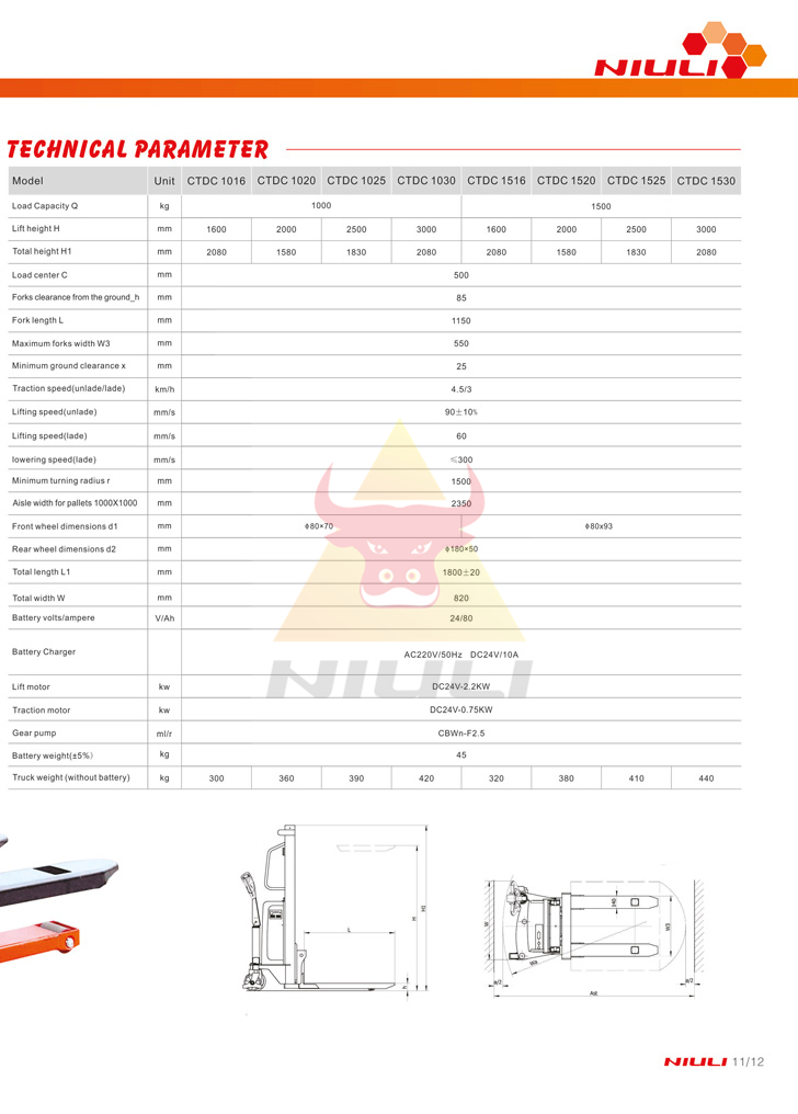 Lifting height(mm) | 1600、2000、2500、3000 | 1600、2000、2500、3000 |