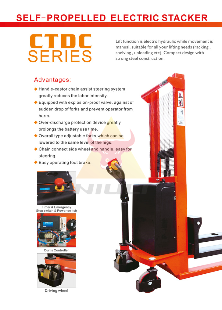 Lift function is electro hydraulic while movement is manual, suitable for all your lifting needs(racking,shelving,unloading etc).Compact design with strong steel construction.